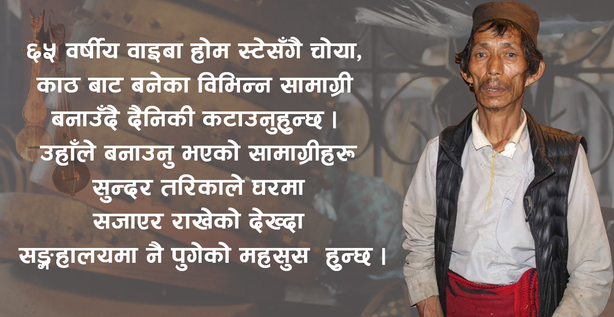 ६५ वर्षीय वाइबा होम स्टे सङ्गै चोया, काठ बाट बनेका विभिन्न सामाग्री बनाउँदै दैनिकी कटाउनु हुन्छ । उहाँले बनाउनु भएको सामाग्रीहरू सुन्दर तरिकाले घरमा सजाएर राखेको देख्दा सङ्ग्रहालय मा नै पुगेको महसुस हुन्छ । उहाँले टुङ्ना, डम्बु, झाँक्री तथा लामाले प्रयोग गर्ने ढ्याङ्ग्रो, डोको, थुन्छे, भकारी, डाली त्यस्तै फुल तथा गुच्छा राख्ने सजावटका सामग्री गरी दर्जनौँ प्रकारका सामाग्री बनाउने गर्नुहुन्छ ।