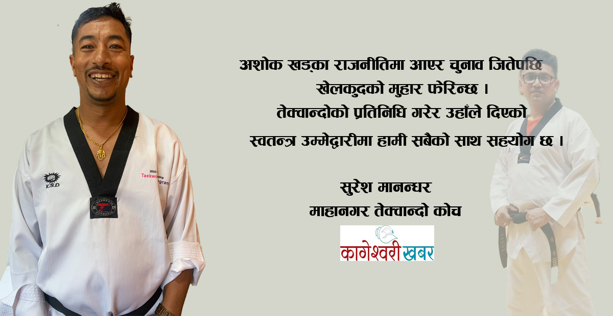 तेक्वान्दोको प्रतिनिधि गरेर अशोक खड्काले स्वतन्त्र उम्मेदवारी दिनुभएको छ । उहाँलाई हामी सबैको साथ र सहयोग रहने छ । उहाँले विभिन्न आपतविपद्मा निम्न वर्ग परिवारलाई आफ्नै क्षेत्र वा बाहिरका जनतालाई सक्दो सहयोग गर्दै आउनुभएको छ ।