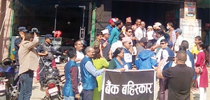 बैङ्कले मनोमानी ढङ्गले ब्याजदर बढाएर किस्ता तिर्न दबाब दिएको आरोप लगाउँदै व्यवसायीले आइतबार र सोमबार दुई दिन बैङ्क बहिष्कार गर्ने व्यवसायीले जनाएका हुन् ।