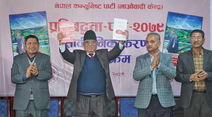 काठमाडौं: सत्ता गठबन्धनमा आबद्ध नेकपा(माओवादी केन्द्र)ले आगामी मङ्सिर ४ गतेका लागि तय भएको प्रतिनिधिसभा र प्रदेशसभाका लागि आफ्नो प्रतिबद्धतापत्र सार्वजनिक गरेको छ ।